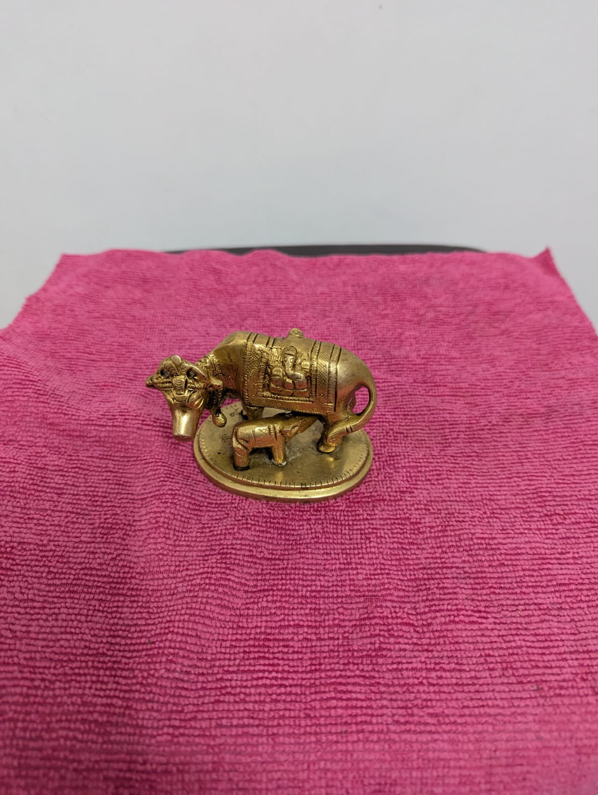 A small cow showpiece symbolizes prosperity, nurturing energy, and abundance.